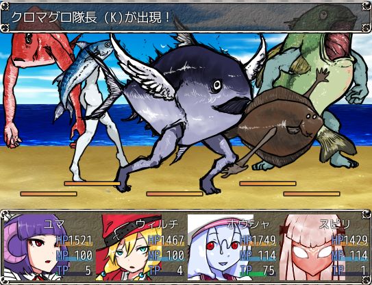 第一章ボス『クロマグロ隊長』と戦闘!