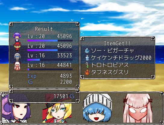・ボスが「ケイケンチドラッグ10000」「ケイケンチドラッグ20000」をドロップした場合、ドロップ画面では