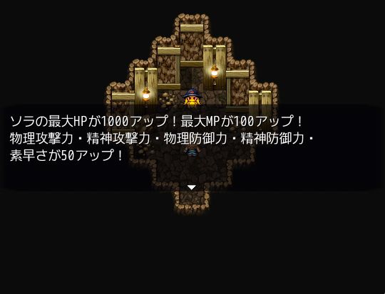 →撃破後ボーナス部屋『ソラ強化:HP+1000、MP+100、物精攻防素各+50』