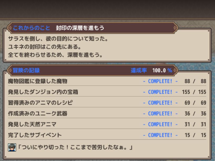 遂に冒険の記憶(実績)コンプしましたよ!